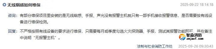 有部分維保項(xiàng)目里安裝的是無線煙感、手報(bào)、聲光沒有報(bào)警主機(jī)就只有一部手機(jī)接收?qǐng)?bào)警信息,是否需要按有線設(shè)備進(jìn)行維保檢測(cè)。